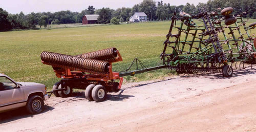 When operating a multitude of farms that can be 30-35 miles apart with limited personnel, it is very important to have quick access to transportation if something breaks and for a ride home at night. Every Wilson Grain tillage implement has rear hitch assembly and pickups have a permanently mounted extendable front tow bar.